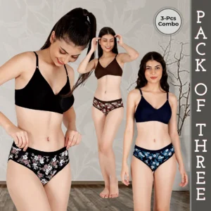 NUTEX Cotton Rich Hipster Panty & Double Layered Lingerie Set For Women (Pack Of 3)
