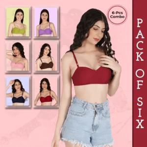 NUTEX Cotton Rich Solid Double Layered Premium Bra For Women (Pack Of 6)